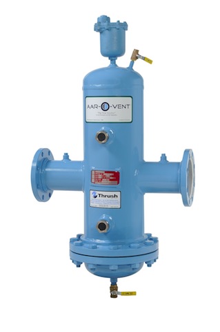 Thrush Co. Inc.’s Aar-O-Vent is an air and dirt separator that can remove and eliminate air, removing air trapped in pockets at high points in a closed-loop piping system. It eliminates heat transfer problems and numerous pumping problems associated with trapped or entrained air, virtually stopping corrosion in piping systems. Ideal applications include hospitals, schools, extended-care facilities, and commercial and industrial processes.