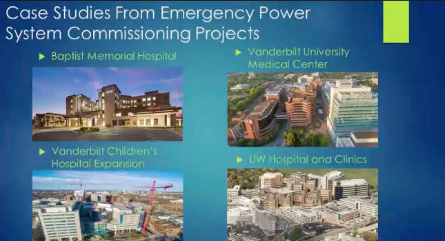 Case studies from four different hospital commissioning projects will illustrate identifying and managing obstacles when planning and implementing functional performance testing of emergency power supply systems for new and existing hospitals. The coordination effort to achieve successful functional testing of a large hospital system can be overwhelming and time consuming, but with the right planning and attention to detail it can be rewarding and valuable to clients.